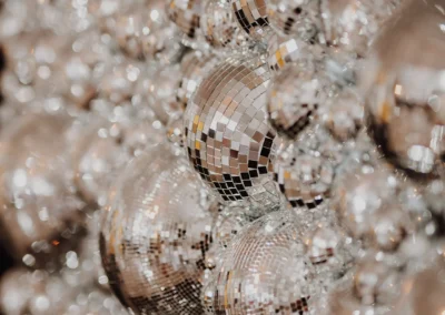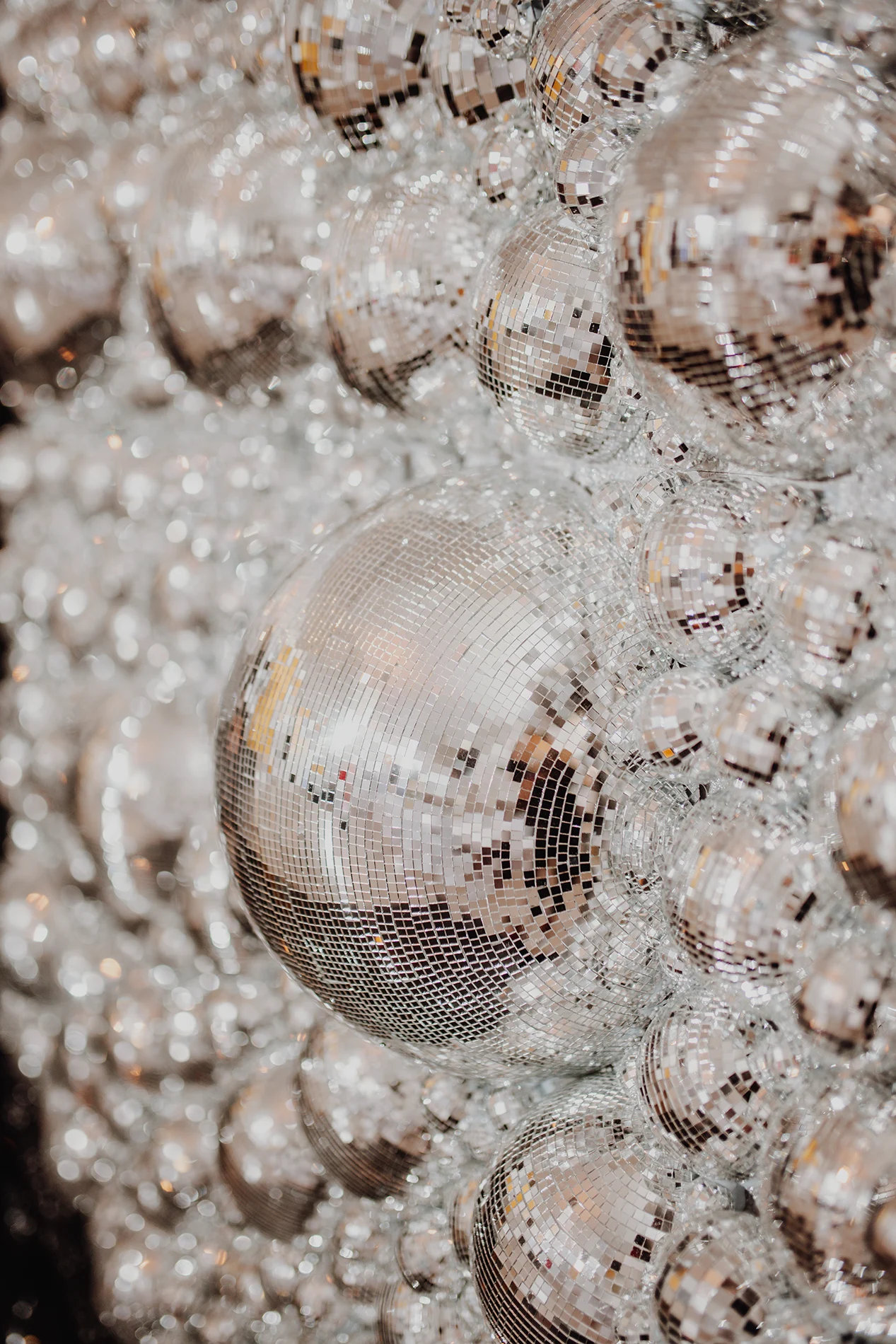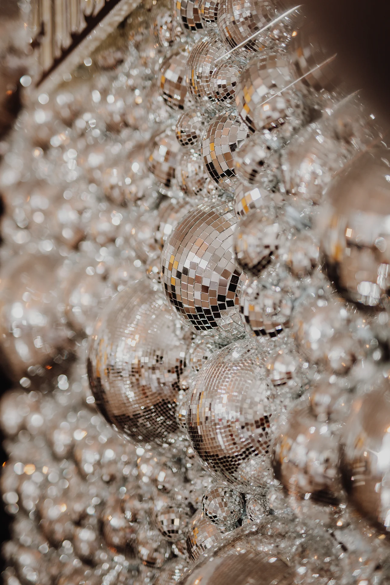 Cała ścianka jest zbudowana z kul disco, które były wyklejane własnoręcznie.